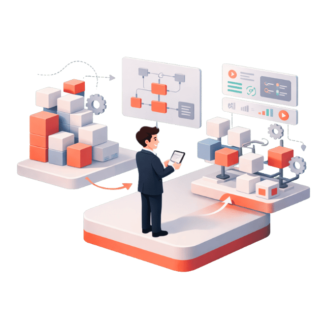 属人化、非効率、ブラックボックス化した業務をテクノロジーと設計の力で“動く仕組み”へと変換し、人が本来やるべき仕事に集中できる環境をつくります。